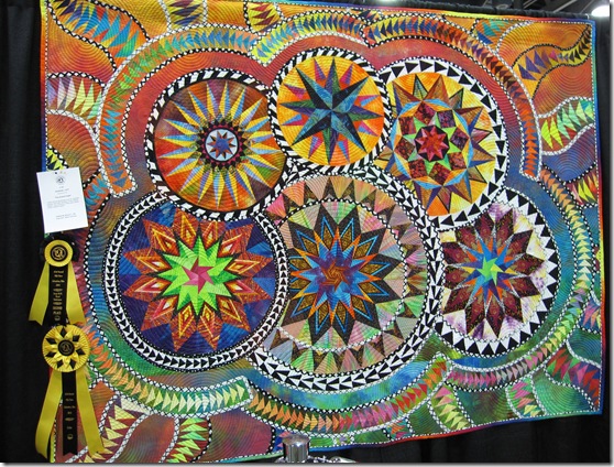 And a good friend, Beth Schillig won yet another award for Mint Julep. Since she retired a few years ago and threw herself into competition quilting full time, she’s just been racking up the awards! We tell her we are tired of opening up every magazine and seeing her work in them but we’re just jealous! She deserves them! You need to see her free-motion stitching up close to appreciate it. Free-motion that is regular and flowing is something I aspire too!